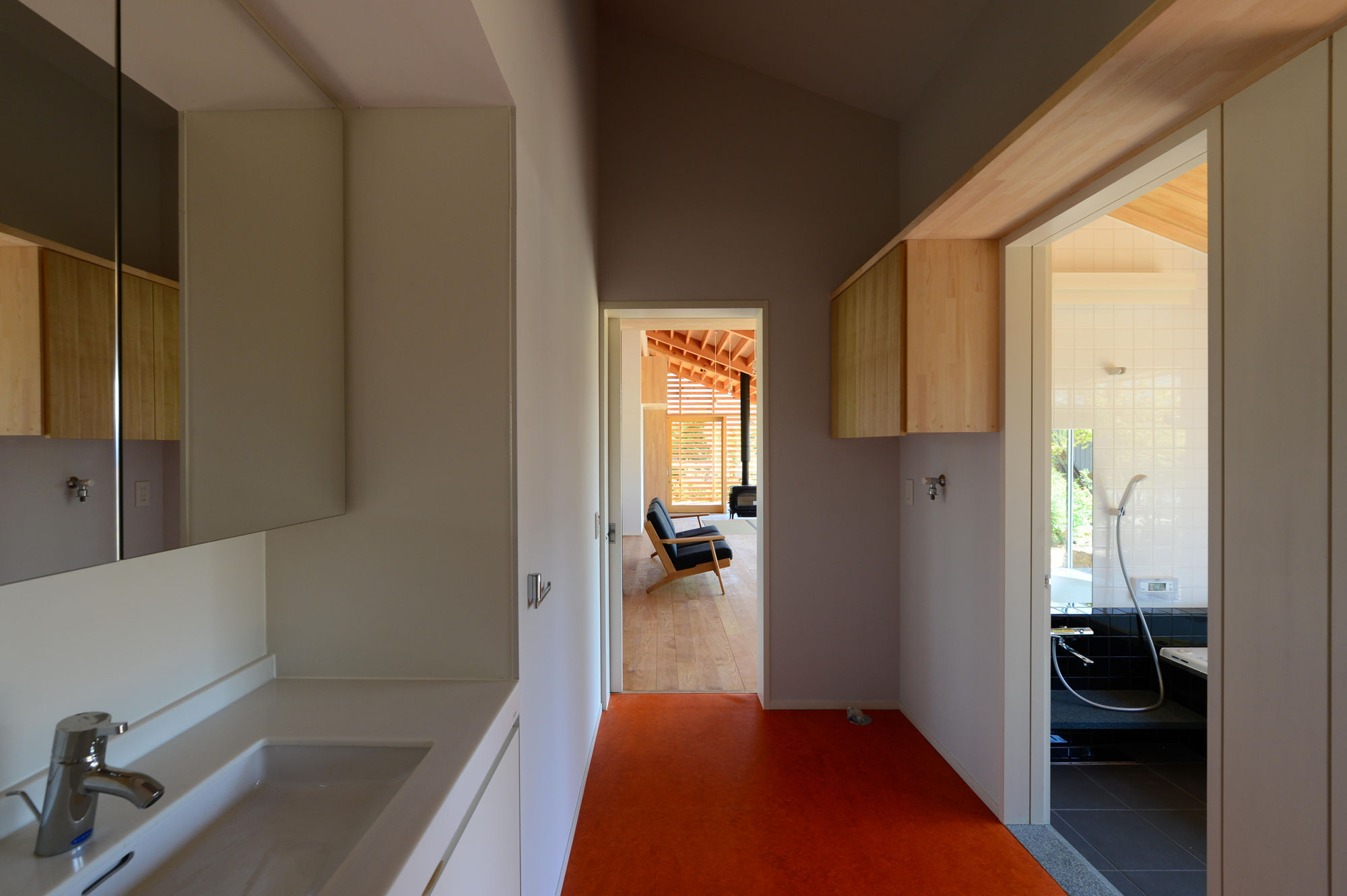 敷地周囲は人通りも少なく隣家の垣根によって囲まれており、ガラスに囲まれた住まいは敷地以上の拡がりを得ています。この地に住む為の「林の中に住む」という意思はカタチとなりました。