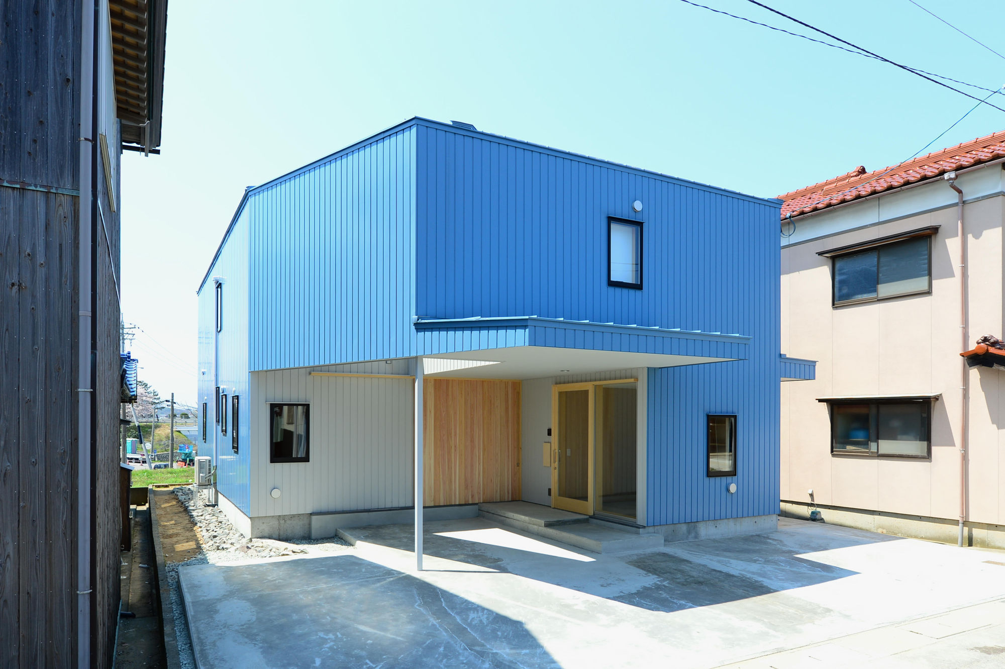 加賀市尼御前近くの住宅。 南と北は隣接した住宅。広くはな い道路を挟んで東側にも住宅 があ り、港町からは離れているが特有の閉塞感が漂います。